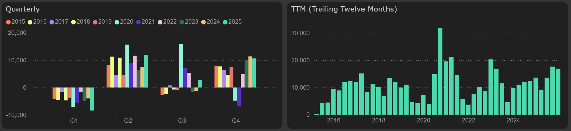 In 2025, the company earned €16.22M, similar to the previous year – €15.96M. The company has maintained its net profit at roughly this level for the past four years, following a strong recovery in 2022.