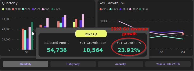2023 Q1 revenue set the new record growing by 23,9% YoY. That was only slightly slower compared to 2022 FY revenue growth (+28% YoY):