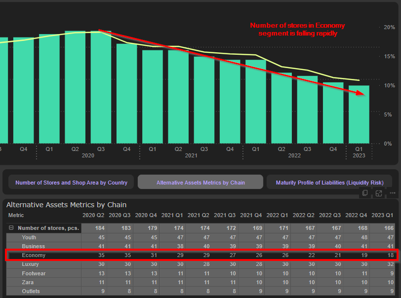 Company is closing also rapidly stores in Economy segment, however that is compensated by very strong growth in revenue per store:
