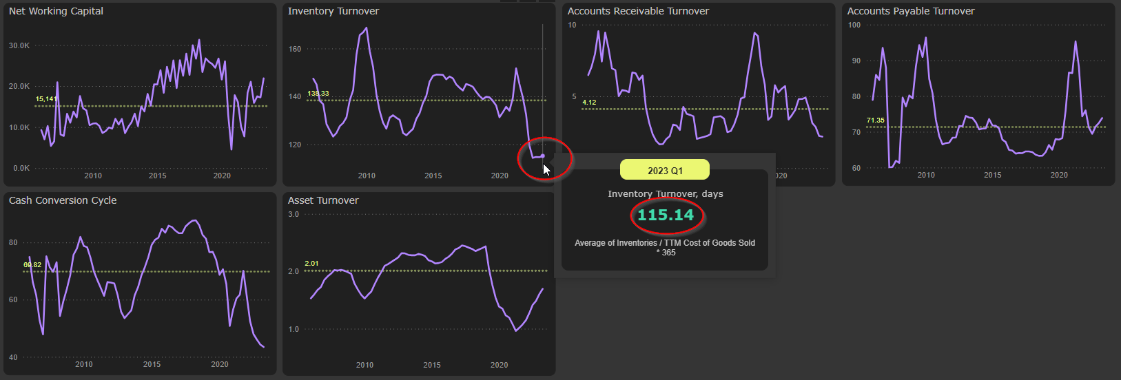 In 2022 FY report Company has briefly explained, that improvement in gross margin was “mainly driven by more effective inventory management”. Actually, it is confirmed by record inventory turnover, which hit all time low at 115 days in the middle of 2022 and has remained at this level since then. That means potentially less discounts for customers and more sustainable gross margin for investors: