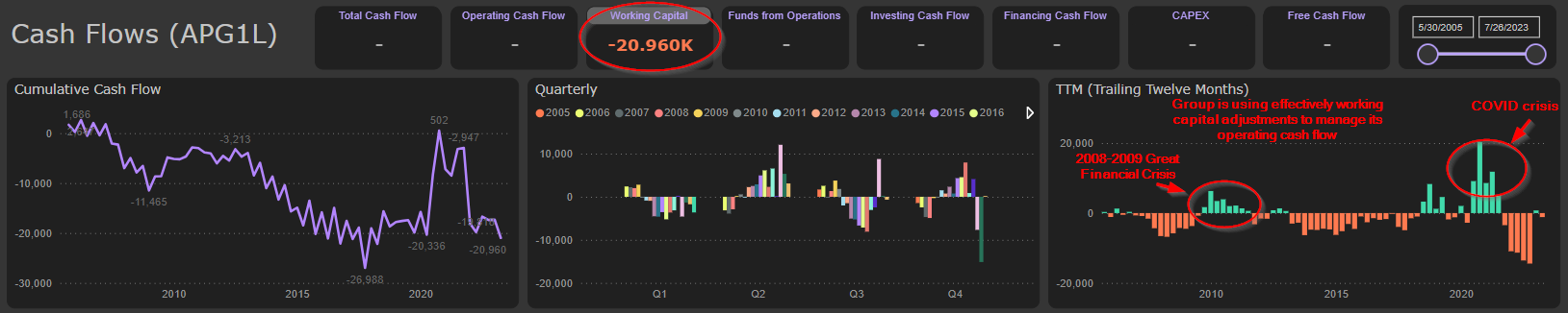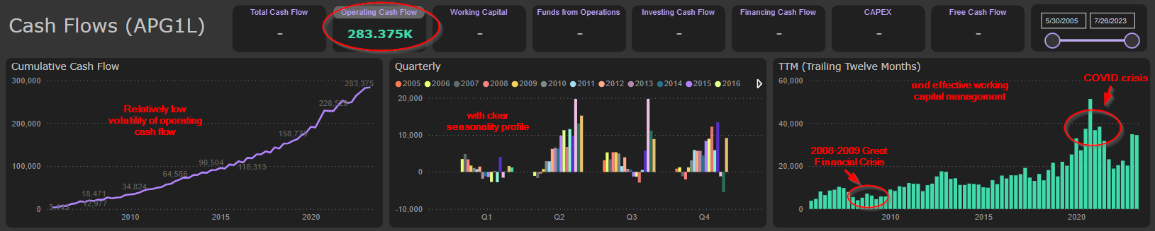 Group is generating stable and growing cash flow from operations with relatively low volatility. Cyclical lows are effectively managing by working capital adjustments: