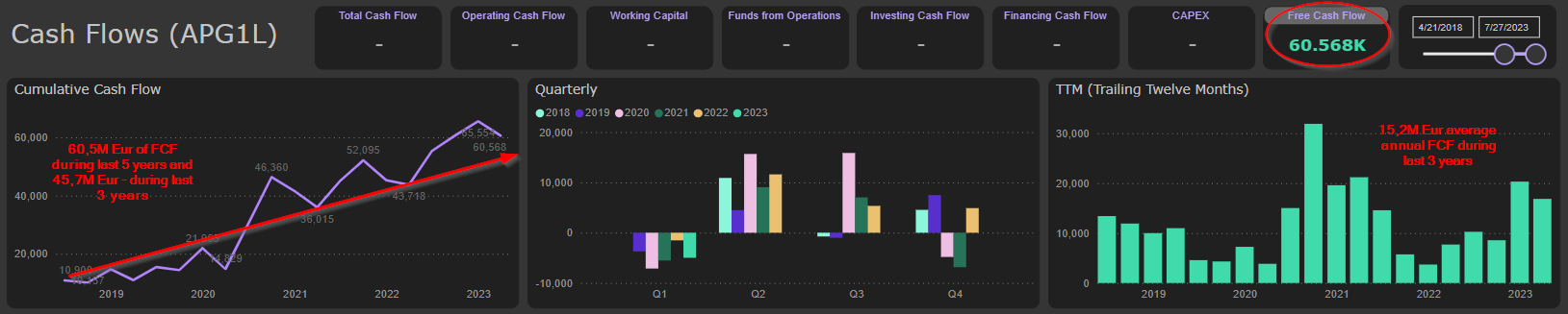 If it would be possible to reduce entire investment analysis to one metric, it would be undoubtedly free cash flow. And its price in the market. Essentially all practical applications of corporate finance and investment analysis, from trivial debt and dividend payment to sophisticated DCF models, are based on free cash flow. From this perspective Apranga Group is really extraordinary achiever.