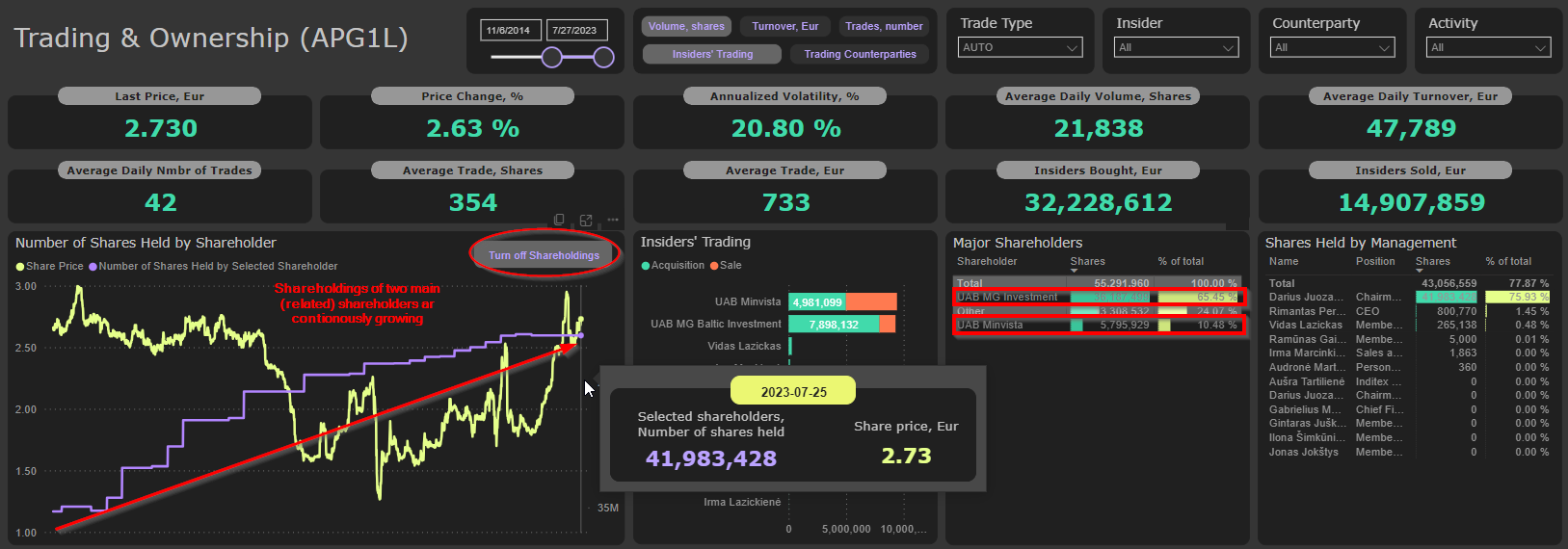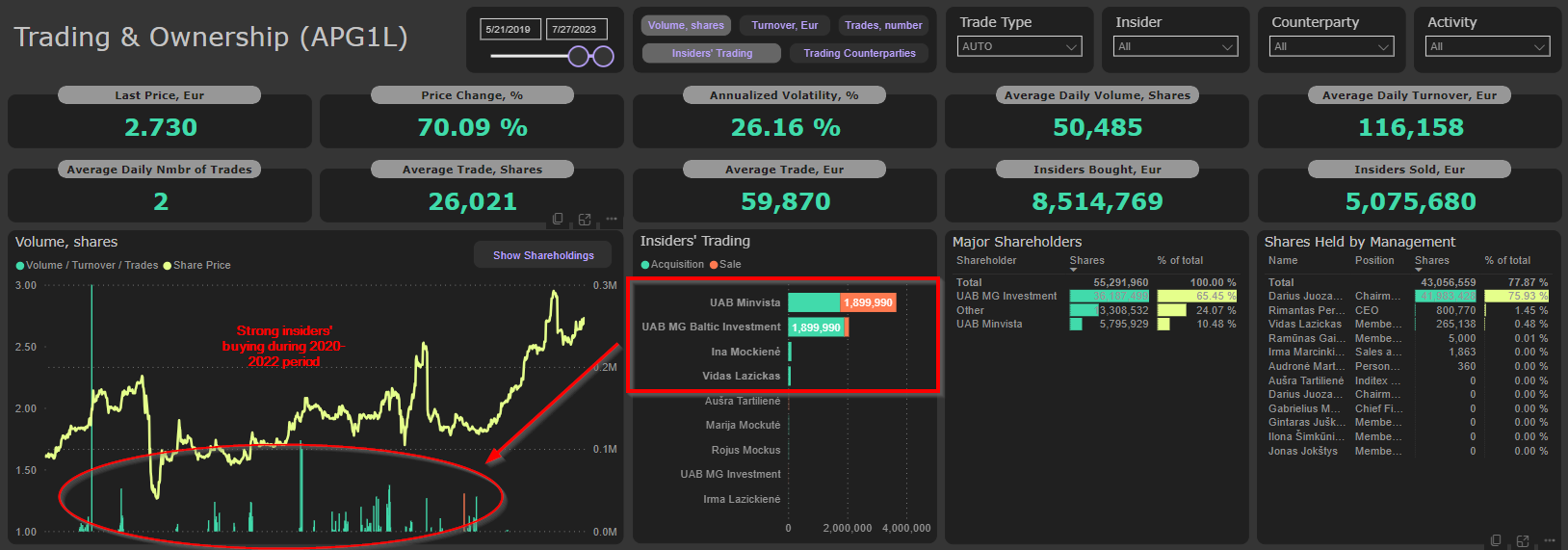 Shareholders risks. Main shareholders (UAB MG Baltic investments and UAB Minvista), which are related parties, and persons related with them are buying actively shares in the open market (especially strong insiders’ activity was at depressed valuation level from 2020 to the end of 2022):