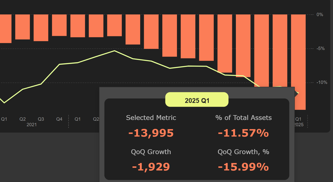 Credit quality continued to exert pressure on results, leading to a 36% increase in credit loss expenses compared to the first quarter of the previous year. The expected credit loss (ECL) allowance rose slightly further, reaching 11.6% of the loan portfolio, up from 8.9% in Q1 2024.