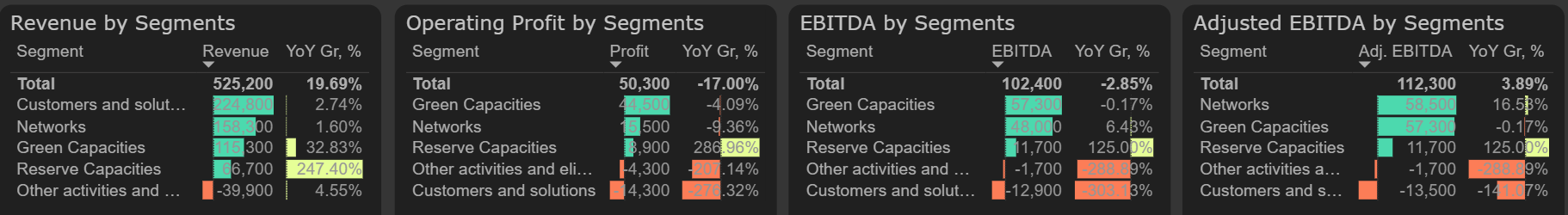 In Q2 2025, Ignitis Group’s revenue grew by 20% YoY, with H1 revenue up by a similar 19%. The strongest growth was seen in revenue from reserve capacities (+136% YoY H1 and +247% YoY Q2) and green capacities (+35% YoY H1 and +33% YoY Q2).