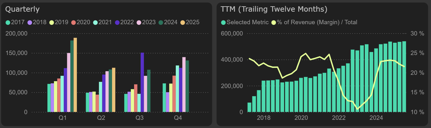 Electricity generation in H1 2025 increased by 71% – from 1.32 TWh in H1 2024 to 2.25 TWh – largely due to higher output at the Elektrėnai complex. This drove a sharp increase in revenue in the reserve capacities segment and lifted profit, but profitability declined sharply in both quarters: adjusted EBITDA margin dropped from 39.5% in H1 2024 to 19.3% in H1 2025. The green capacities segment also faced profitability challenges in Q2 – adjusted EBITDA remained at last year’s level despite revenue growth.