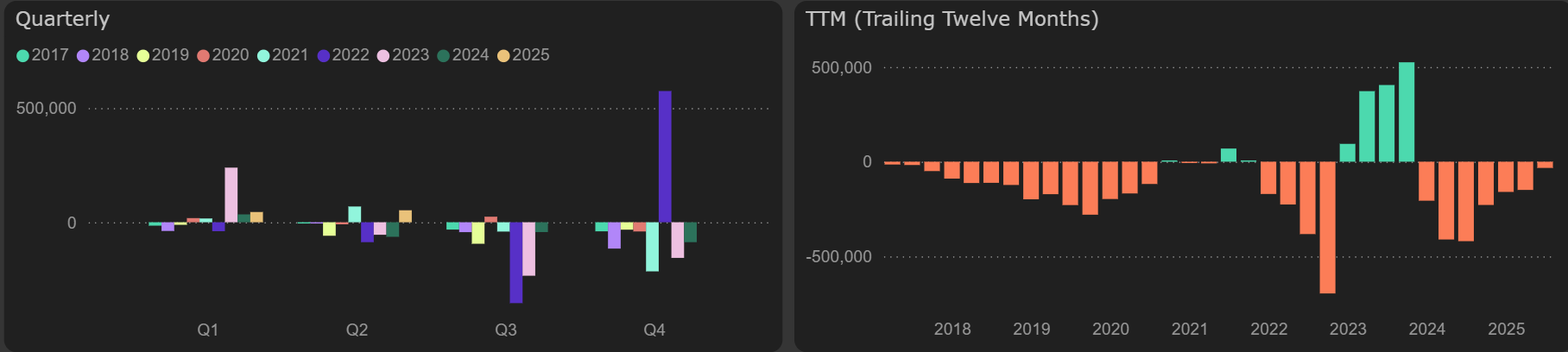 Free cash flow in Q2 2025 was positive at €52.5M, supported by stronger funds from operations, a release of working capital due to lower receivables, and lower investments in fixed assets. On a TTM basis, free cash flow remained negative but moved closer to positive territory.