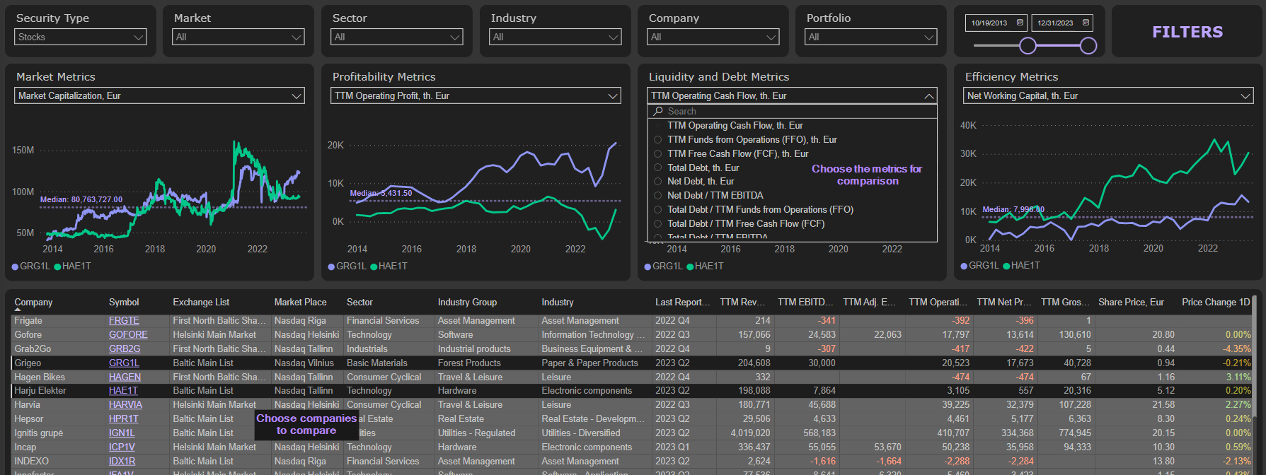 In the Expert dashboard you can choose multiple companies with “Ctrl” key and use any from dozens financial metrics to compare them: