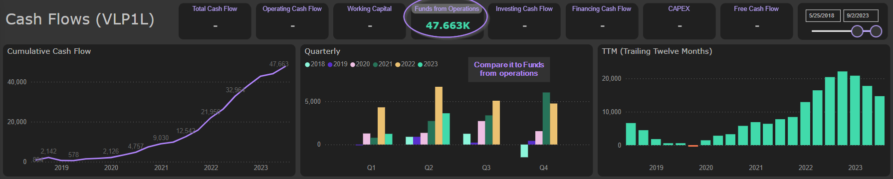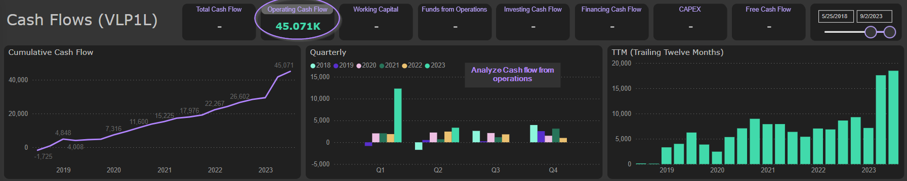 First of all, excluding Working capital items from the Operating cash flow allows you to analyze quickly and effectively Funds from operations, one of the most important metrics of cash flows. We have even created specific buttons to separate and compare these metrics quickly and effectively: