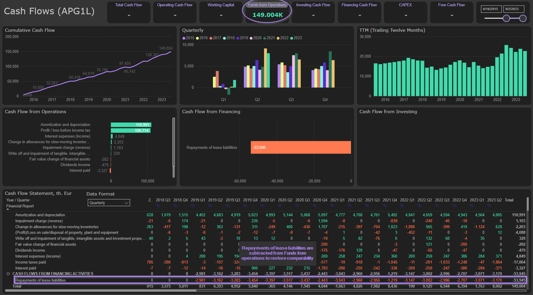 Further, you can subtract lease payments from Funds from operations to restore cash flow comparability after 2019 IFRS 16 change and reflect cash flow from operations in more correct way. We have done that already by including lease payments into Funds from operations metric. You need just to press the right button: