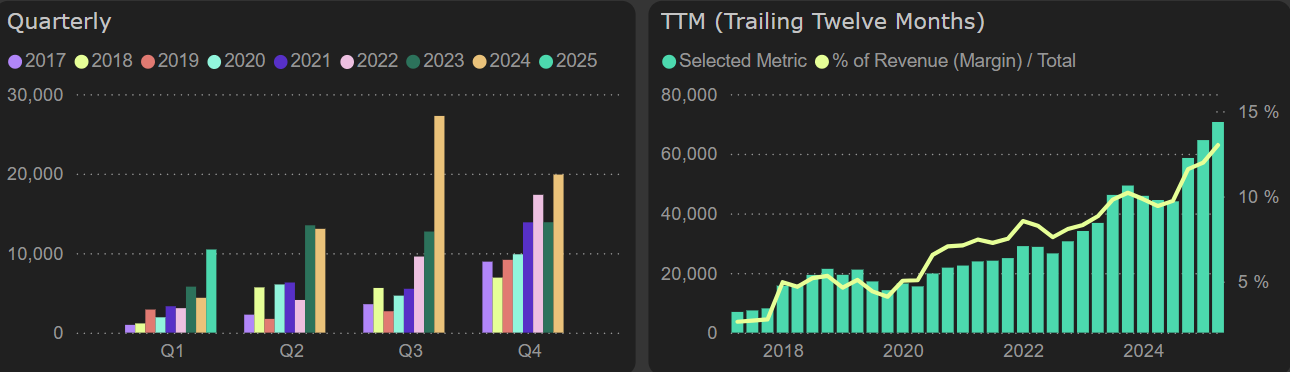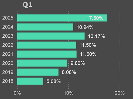 The profit growth trajectory was further supported by a high gross margin, which was 6.5% higher compared to the first quarter of 2024. However, in the first quarter of 2025, the gross margin (17.5%) was already lower than in the last two quarters of 2024 (Q3 2024 – 22.5%, Q4 2024 – 20.5%).