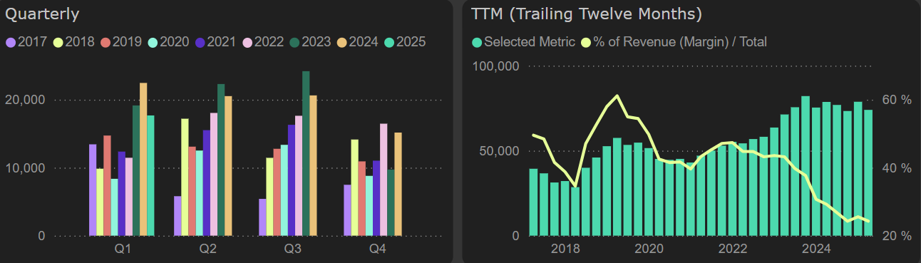 Net profit for this quarter was €4.8M lower (similar to net interest income), representing a 21% decrease compared to Q1 2024. The annual net profit amounts to €74M.