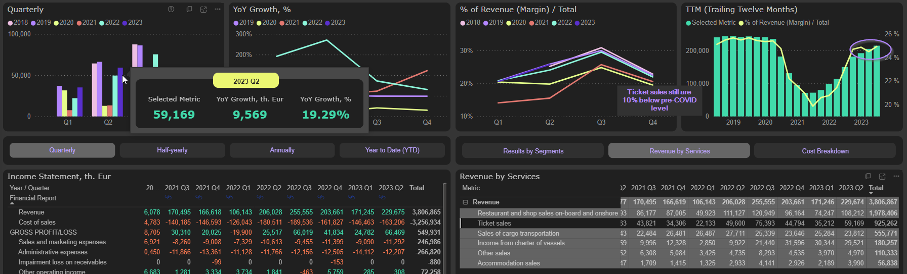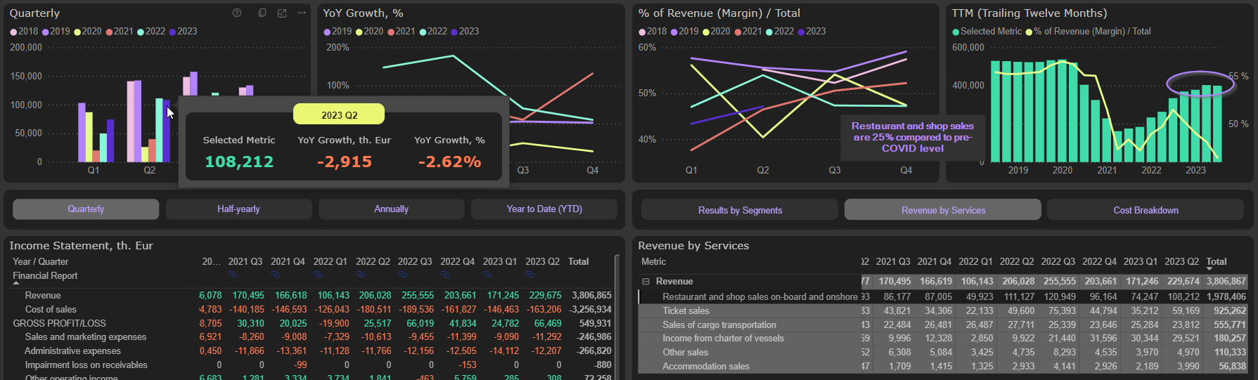 Restaurant and shop sales were 2,6% lower YoY in 2023 Q2 and 25% lower compared to pre-COVID level: