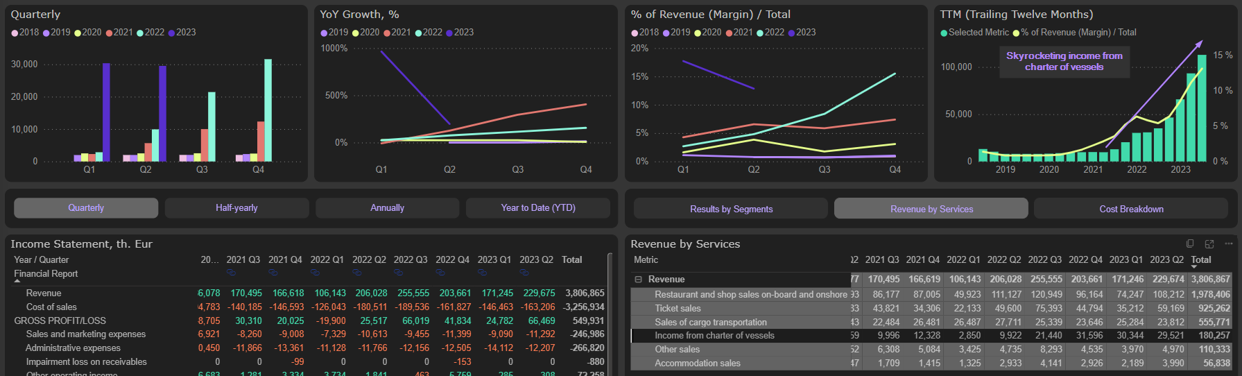 All of this lost core business was made up by skyrocketing income from charter of vessels: