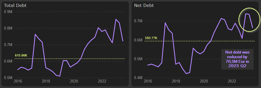 This huge FCF allowed to reduce net debt by 70,5M Eur in 2023 Q2: