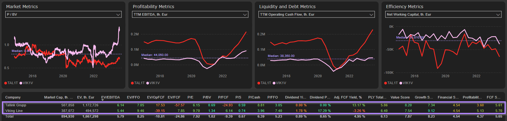Also, Tallink is relatively better priced compared to its direct peer from Finland – Viking Line (especially after eliminating Viking Line’s capital gains):