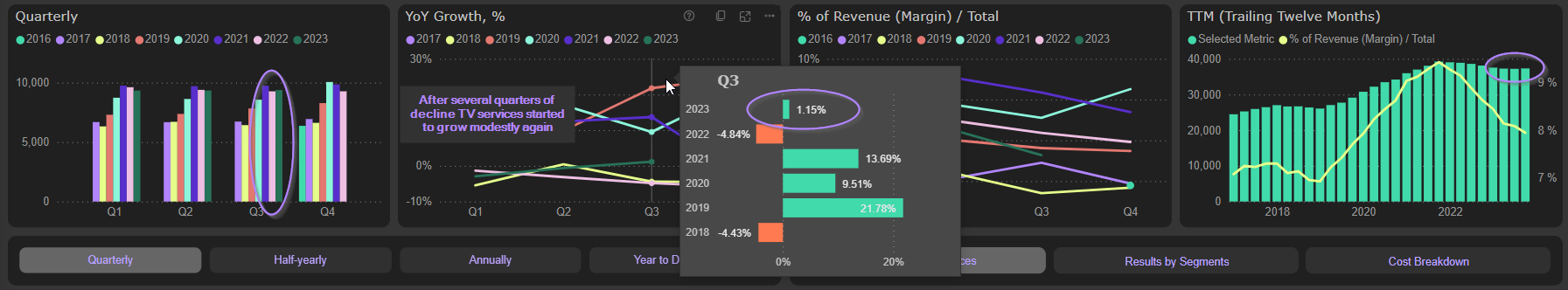 Even voice telephony services and TV services, two most “growth-resistant” business lines, started to grow modestly again: