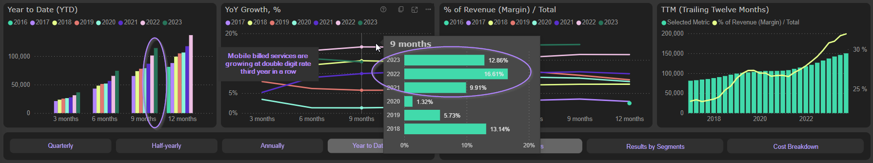 Mobile billed services are growing at double digit rate third year in a row ant its weight in the revenue structure is continuously increasing:
