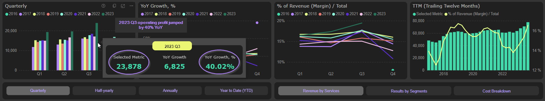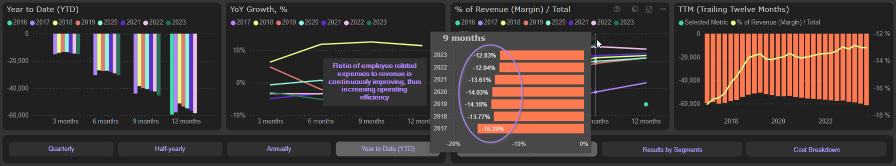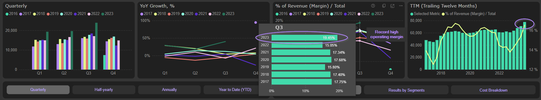 Operating margin reached record highs: 19,45% for 2023 Q3 and 16,5% for TTM: