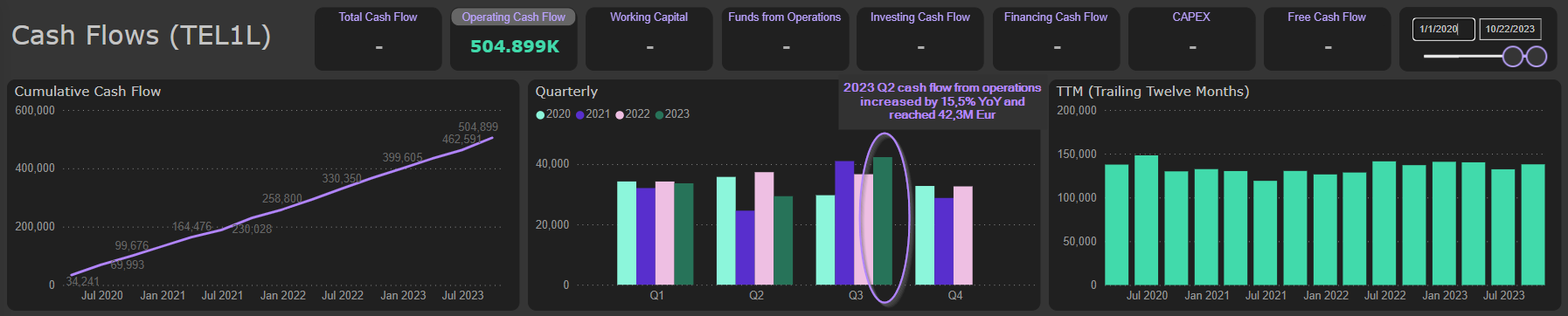 First of all, 2023 Q2 cash flow from operations increased by 15,5% YoY and reached 42,3M Eur: