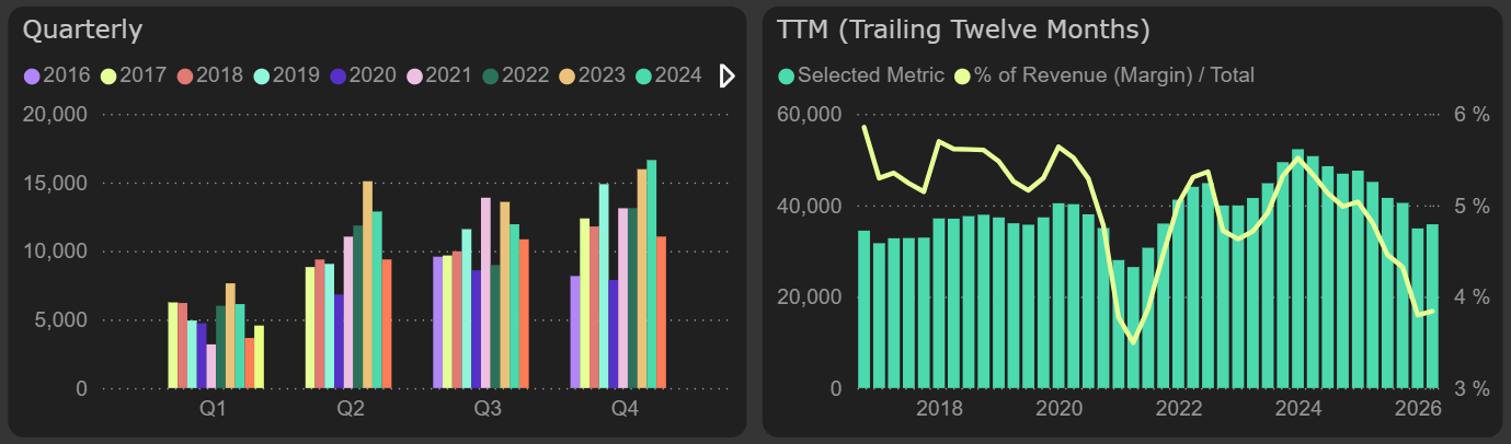 However, this result is not exceptional in the company’s historical context – stronger Q1 results were achieved in 2022–2024, when operating profit ranged between €6M–€7.6M.